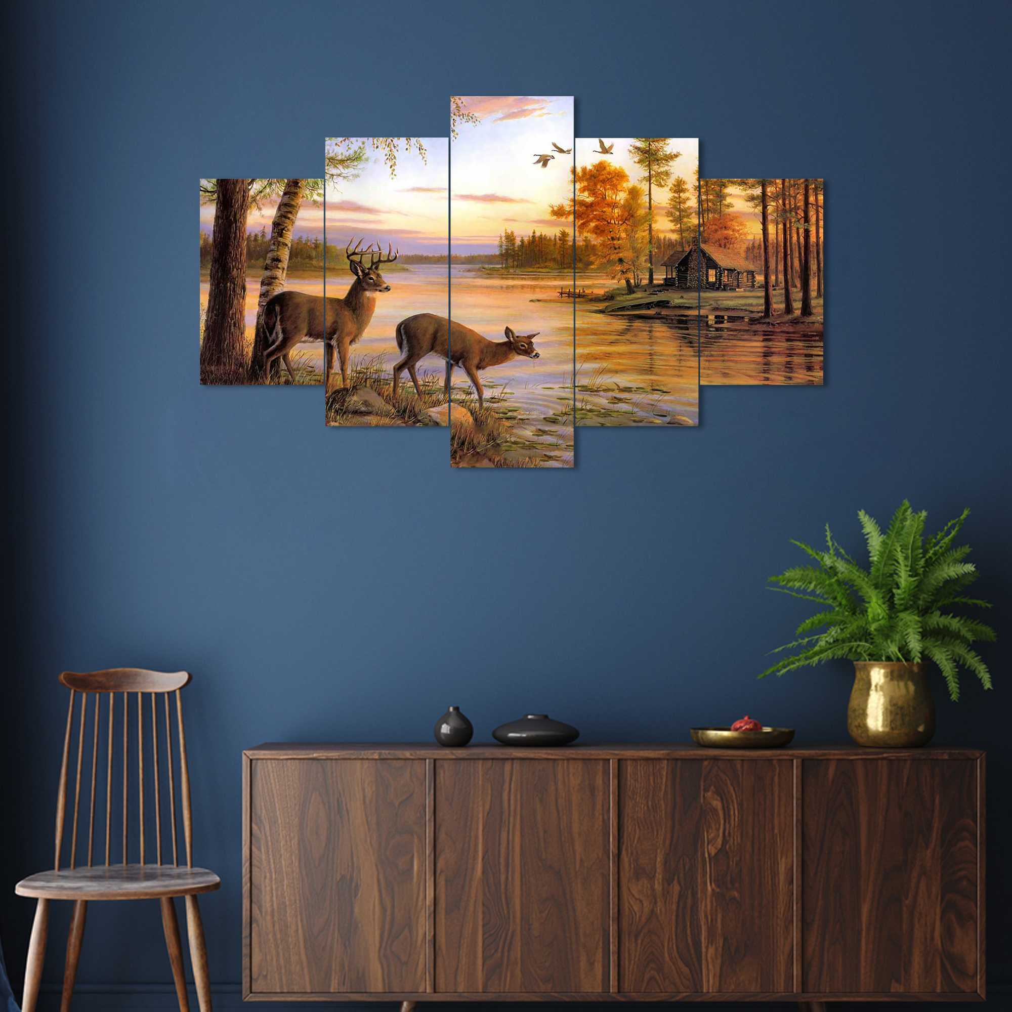 Nature Set of Five 3D Framed Paintings for Wall Decoration – Ideal for Home, Living Room, and Bedroom (75 x 43 CM)